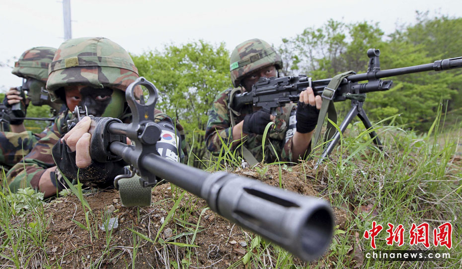 5月24日,韓國(guó)軍隊(duì)在靠近韓朝非軍事區(qū)的揚(yáng)口舉行軍事演習(xí)。圖片來(lái)源:中國(guó)新聞網(wǎng)