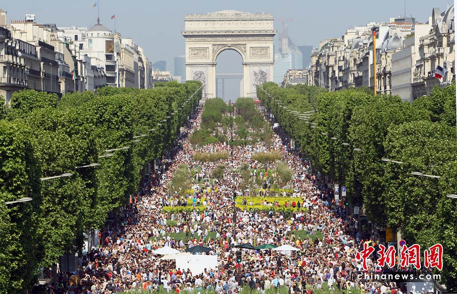 5月24日,法國總統(tǒng)薩科齊和妻子布呂尼參觀在法國巴黎舉行的“自然首都”展。該項展覽是由街頭藝術家加德·魏爾聯(lián)手法國“青年農(nóng)民協(xié)會”和林業(yè)協(xié)會共同發(fā)起的的,將百余種農(nóng)作物、樹木和動物“齊聚”法國首都巴黎的香榭麗舍大街,令這條“香街”變身“綠色的自然世界”。圖片來源:中國新聞網(wǎng)