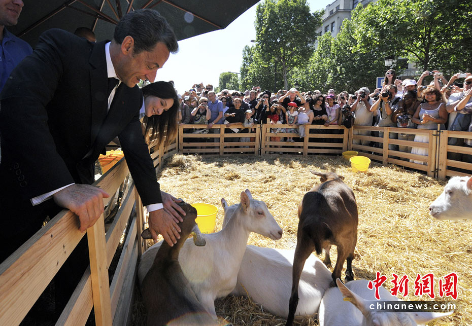 5月24日,法國總統(tǒng)薩科齊和妻子布呂尼參觀在法國巴黎舉行的“自然首都”展。該項展覽是由街頭藝術(shù)家加德·魏爾聯(lián)手法國“青年農(nóng)民協(xié)會”和林業(yè)協(xié)會共同發(fā)起的的,將百余種農(nóng)作物、樹木和動物“齊聚”法國首都巴黎的香榭麗舍大街,令這條“香街”變身“綠色的自然世界”。圖片來源:中國新聞網(wǎng)
