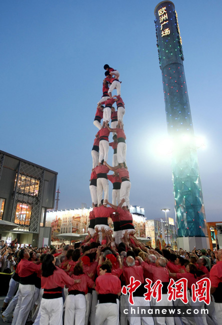 5月25日,西班牙“人塔”在上海世博會(huì)歐洲廣場(chǎng)上逐層壘起,為西班牙加泰羅尼亞周助興。“疊人塔”(HUMAN WALL),是西班牙加泰羅尼亞地區(qū)最具傳統(tǒng)特色的民俗節(jié)慶活動(dòng),起源于18世紀(jì)末加泰羅尼亞南部的巴爾斯。后來(lái),“疊人塔”活動(dòng)逐漸在加泰羅尼亞其他地區(qū)流行,進(jìn)而風(fēng)靡整個(gè)西班牙。中新社發(fā) 杜洋 攝