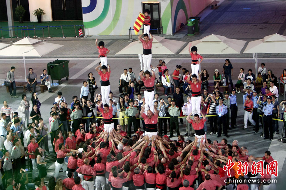 5月25日,西班牙“人塔”在上海世博會(huì)歐洲廣場(chǎng)上逐層壘起,為西班牙加泰羅尼亞周助興!隘B人塔”(HUMAN WALL),是西班牙加泰羅尼亞地區(qū)最具傳統(tǒng)特色的民俗節(jié)慶活動(dòng),起源于18世紀(jì)末加泰羅尼亞南部的巴爾斯。后來,“疊人塔”活動(dòng)逐漸在加泰羅尼亞其他地區(qū)流行,進(jìn)而風(fēng)靡整個(gè)西班牙。中新社發(fā) 杜洋 攝