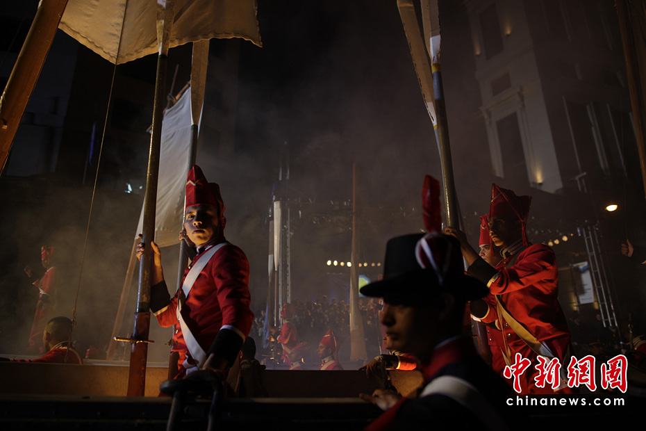 5月25日是阿根廷獨立200周年紀念日。在阿根廷首都布宜諾斯艾利斯人們舉行盛大的慶;顒蛹o念這一偉大的日子。圖片來源:中國新聞網(wǎng)