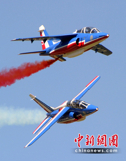 5月25日,法國巡邏兵特技飛行表演隊(duì)在普羅旺斯地區(qū)進(jìn)行驚險的飛行表演。