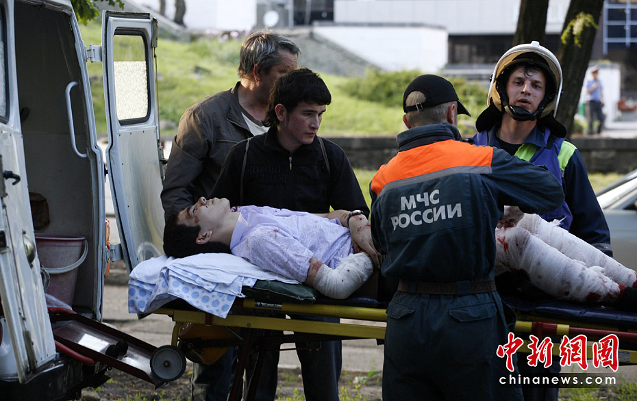 當(dāng)?shù)貢r間5月26日18時45分,一不明爆炸物在與斯塔夫羅波爾市體育文化宮毗鄰的一個建筑附近發(fā)生爆炸,造成至少5人死亡,46人受傷。警方初步判斷,爆炸造成的死傷人員可能是來參加車臣國家歌舞團(tuán)舉行的音樂會的觀眾。目前爆炸現(xiàn)場已被封鎖,俄聯(lián)邦總檢察院北高加索和南部聯(lián)邦區(qū)偵查機(jī)關(guān)正會同當(dāng)?shù)鼐胶吐?lián)邦調(diào)查局進(jìn)行現(xiàn)場調(diào)查。圖片來源:中國新聞網(wǎng)