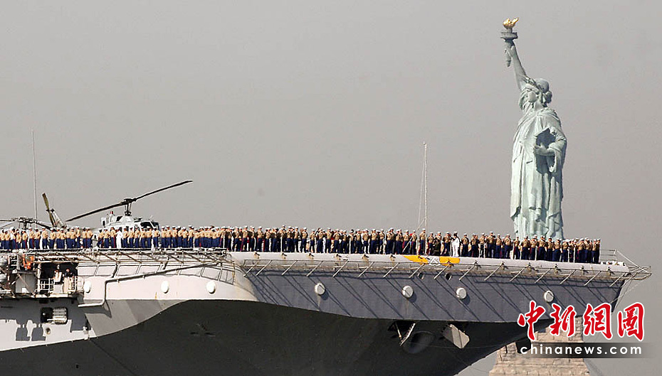 當(dāng)?shù)貢r(shí)間5月26日,美國第23屆紐約艦隊(duì)周開幕,包括“硫磺島”號兩棲攻擊艦在內(nèi)的11艘參加艦隊(duì)周活動的軍艦由南向北在哈得孫河面上游弋。紐約民眾將以停靠在曼哈頓哈得孫河86號碼頭的“無畏號”航母博物館為中心,展開為期一周的慶祝和紀(jì)念活動。圖片來源:中國新聞網(wǎng)