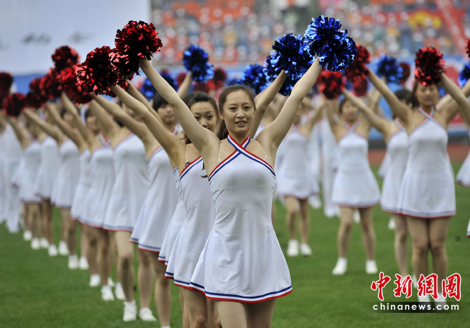 中央國家機(jī)關(guān)第三屆職工運(yùn)動會今日在北京國家奧林匹克體育中心正式開幕。90多個中央國家機(jī)關(guān)部門參加開幕式,中共中央政治局常委、國務(wù)院副總理李克強(qiáng)出席活動。圖為開幕式上的健身操表演。中新網(wǎng)記者 金碩 攝
