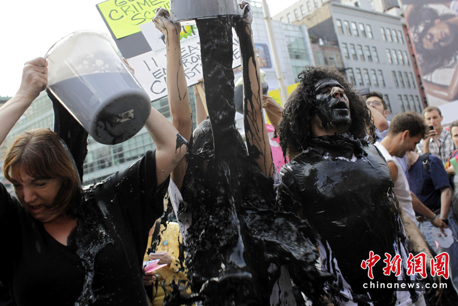 美國環(huán)保者身灑顏料抗議原油泄漏