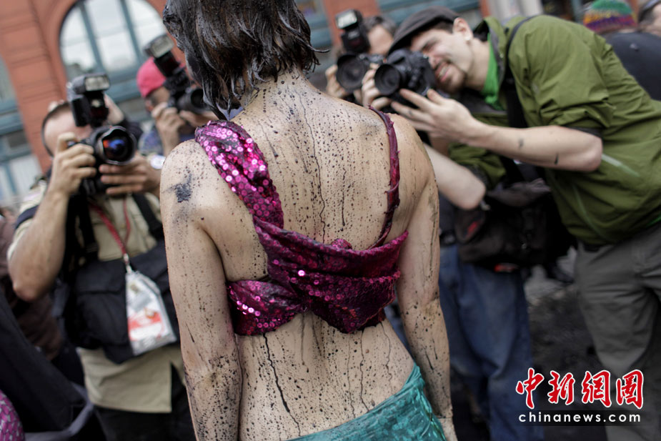 美國環(huán)保者身灑顏料抗議原油泄漏