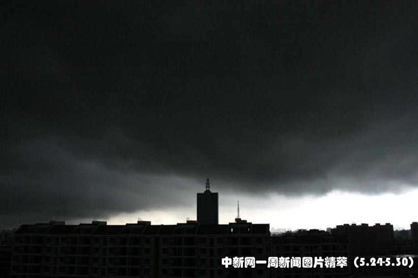 26(周三),一場暴風(fēng)雨即將來臨前的海南?谔炜諡踉品瓭L,出現(xiàn)“烏云壓城 城欲摧”景觀。張茂 攝