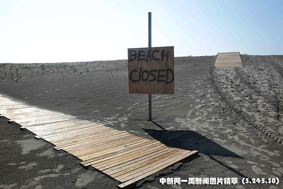 照片攝于美國路易斯安那州發(fā)現(xiàn)之島,受墨西哥灣原油泄漏事故的影響,該島的海灘已被關閉。