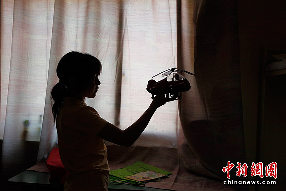 5月30日,河南新鄉(xiāng)市太陽村,服刑人員子女的兒童節(jié)。圖為孩子在玩兒受捐助的玩具飛機。拂曉/CFP