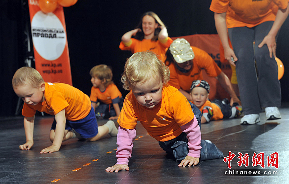 當(dāng)?shù)貢r間5月31日,烏克蘭基輔舉行了寶寶爬行大賽。數(shù)十名嬰兒在母親的鼓勵下奮力向4米外的終點爬去。圖片來源:中國新聞網(wǎng)