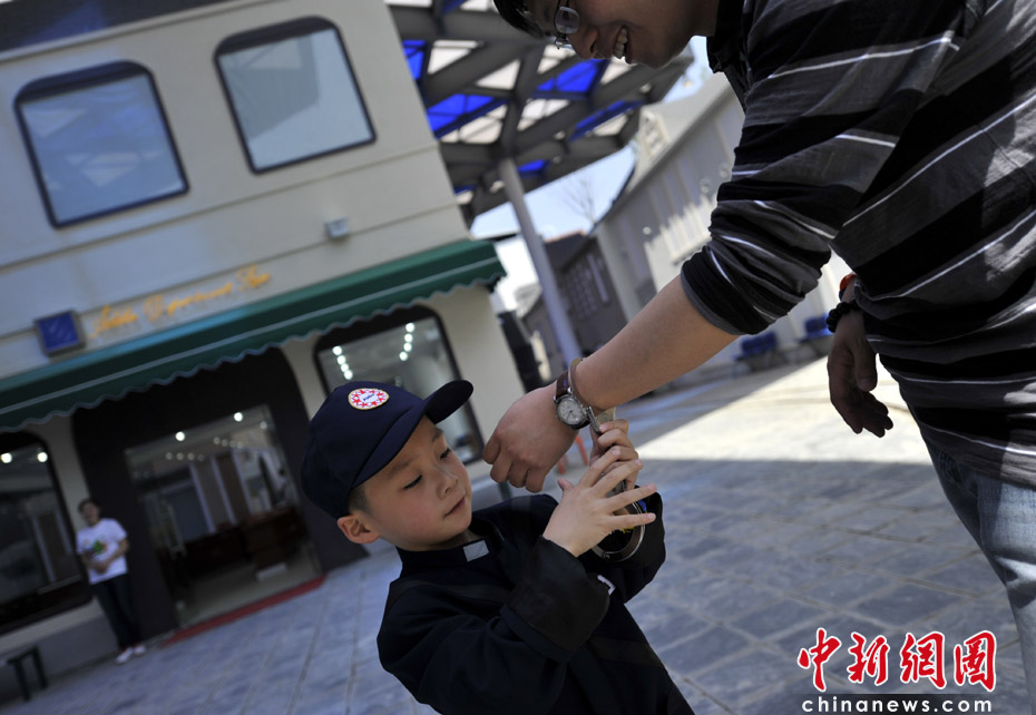 圖為“小警察”在逮捕“罪犯”。 中新網(wǎng)記者 王紅綱 攝
