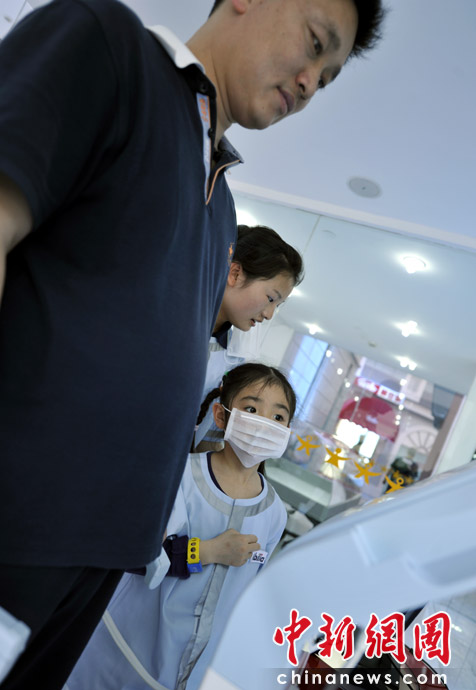 圖為孩子在體驗做一名護士,為家人體檢。 中新網(wǎng)記者 王紅綱 攝