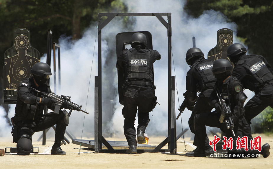 2010年6月1日,在韓國首爾,首爾防衛(wèi)部隊進行了大型反恐軍事演練。