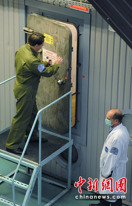 當(dāng)?shù)貢r間6月3日14時,“火星-500”實驗艙最后一道艙門關(guān)閉,人類歷史上首次模擬火星載人航天飛行試驗就此拉開帷幕。圖片來源:中國新聞網(wǎng)