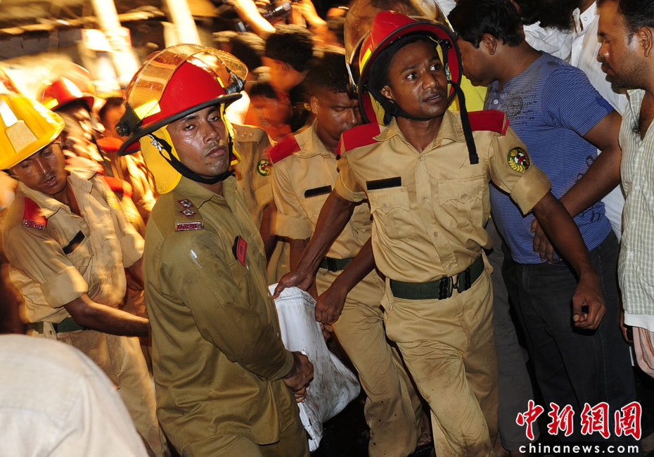 6月3日,孟加拉國首都達卡夜間發(fā)生一起重大火災,到目前為止已造成至少87人死亡,上百人受傷。圖為火災現場消防員抬出一具遇難者遺體。圖片來源:中國新聞網