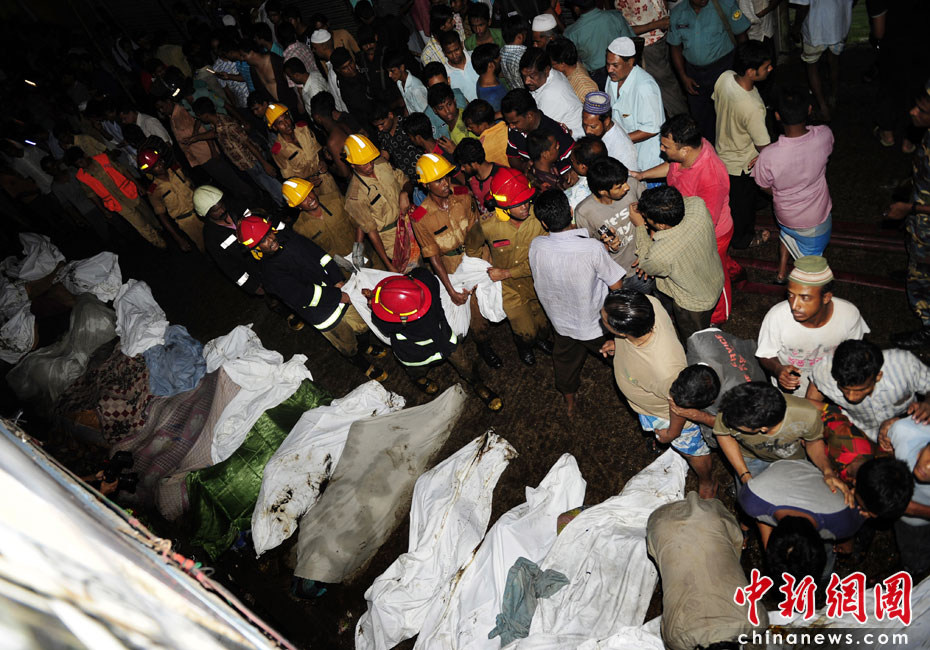 6月3日,孟加拉國首都達(dá)卡夜間發(fā)生一起重大火災(zāi),到目前為止已造成至少87人死亡,上百人受傷。圖為遇難者家屬辨認(rèn)火災(zāi)遇難者的遺體。圖片來源:中國新聞網(wǎng)