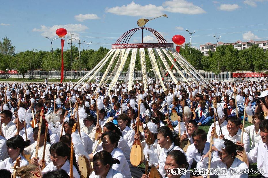 5月30日,新疆托里縣28個民族10495人共同參加冬不拉樂器表演,創(chuàng)下上海吉尼斯世界紀錄。萬人同奏的哈薩克族樂曲名為《凱乃斯》,漢語意為“和諧”。圖片來源:中國新聞網(wǎng)>>點擊觀看詳細內(nèi)容