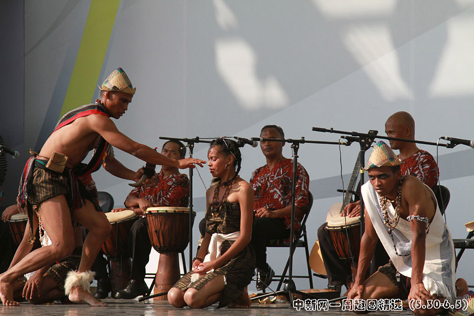 5月30日,馬達(dá)加斯加肯特思米諾歌舞團(tuán)在世博園非洲廣場(chǎng)表演比洛傳統(tǒng)儀式,逼真的神態(tài)、激情的表演,博得許多參觀者稱贊。當(dāng)天是馬達(dá)加斯加館日,世博中心內(nèi)舉行了其國(guó)家館日活動(dòng),馬方和中方代表共同出席。圖片來源:中國(guó)新聞網(wǎng)>>點(diǎn)擊觀看詳細(xì)內(nèi)容