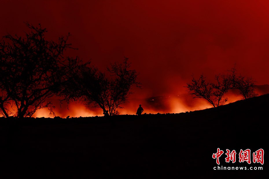 當(dāng)?shù)貢r(shí)間6月4日,危地馬拉帕卡亞火山噴發(fā),涌出大量熔巖,迫使周邊數(shù)千居民緊急疏散。圖片來源:中國新聞網(wǎng)