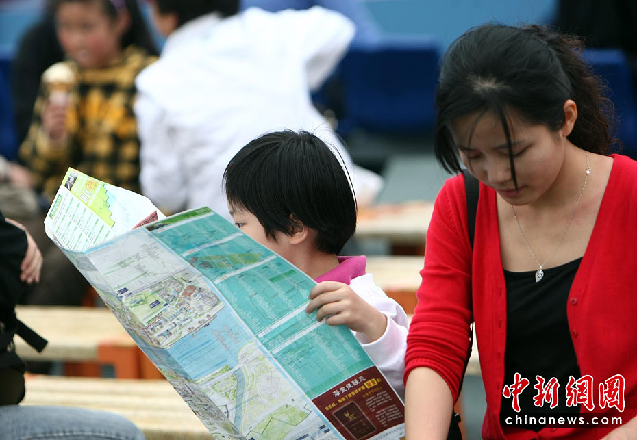 截至6月5日19點(diǎn)30分,上海世博會(huì)累計(jì)參觀者已超過1000萬人次。據(jù)悉,上海世博會(huì)的規(guī)劃用地為5.28平方公里,約242個(gè)國家和國際組織參展分布在浦東和浦西兩大區(qū)域。要想在這么大的地方找到自己想去的地方,那么世博地圖就是必須的裝備。圖為上海世博園內(nèi)游客正在地圖上尋找自己要去的地方。中新社記者 杜洋 攝