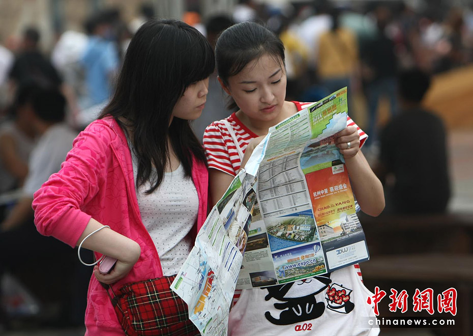 截至6月5日19點(diǎn)30分,上海世博會(huì)累計(jì)參觀者已超過(guò)1000萬(wàn)人次。據(jù)悉,上海世博會(huì)的規(guī)劃用地為5.28平方公里,約242個(gè)國(guó)家和國(guó)際組織參展分布在浦東和浦西兩大區(qū)域。要想在這么大的地方找到自己想去的地方,那么世博地圖就是必須的裝備。圖為上海世博園內(nèi)游客正在地圖上尋找自己要去的地方。中新社記者 杜洋 攝