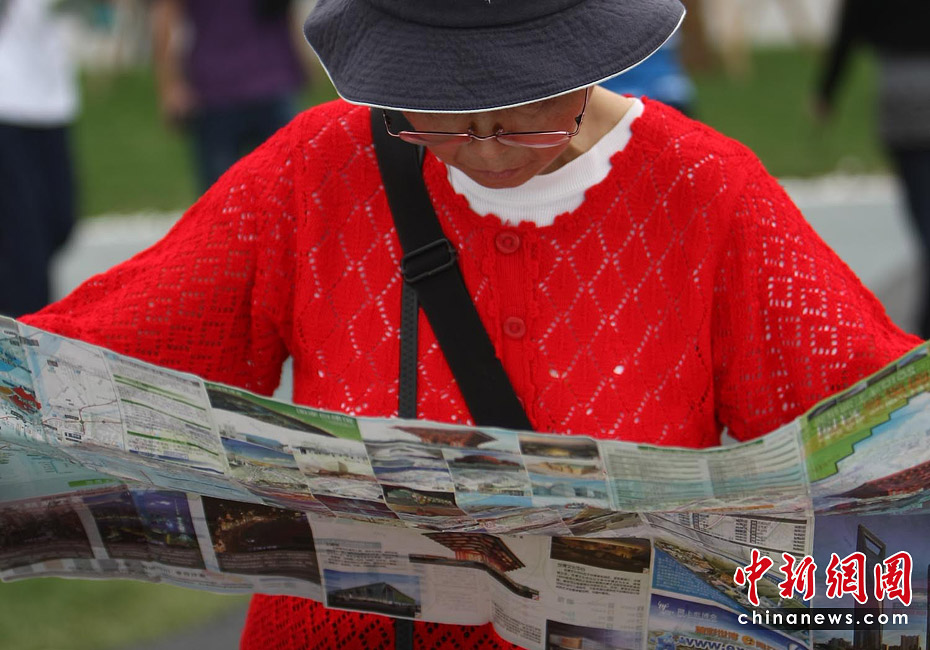 截至6月5日19點30分,上海世博會累計參觀者已超過1000萬人次。據(jù)悉,上海世博會的規(guī)劃用地為5.28平方公里,約242個國家和國際組織參展分布在浦東和浦西兩大區(qū)域。要想在這么大的地方找到自己想去的地方,那么世博地圖就是必須的裝備。圖為上海世博園內(nèi)游客正在地圖上尋找自己要去的地方。中新社記者 杜洋 攝