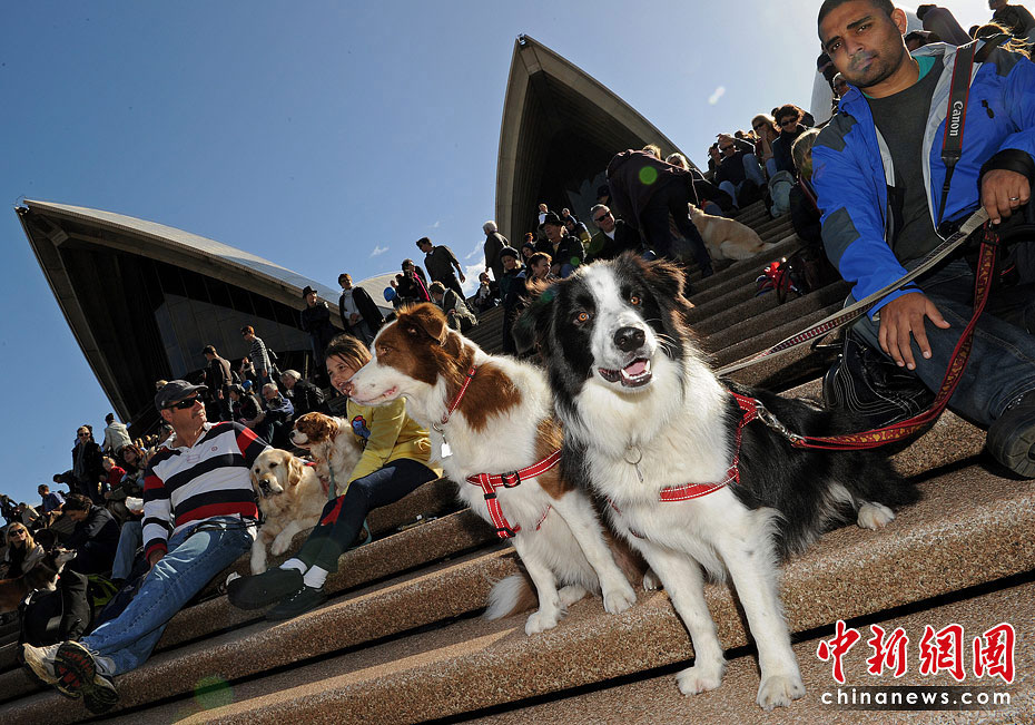 6月5日,澳大利亞悉尼歌劇院外舉辦了全球首場狗能聽懂的音樂會,約有1000人帶著數(shù)百只愛犬在劇院前庭和階梯落坐,聆聽“狗的音樂”,整場音樂會全長20分鐘。圖片來源:中國新聞網(wǎng)