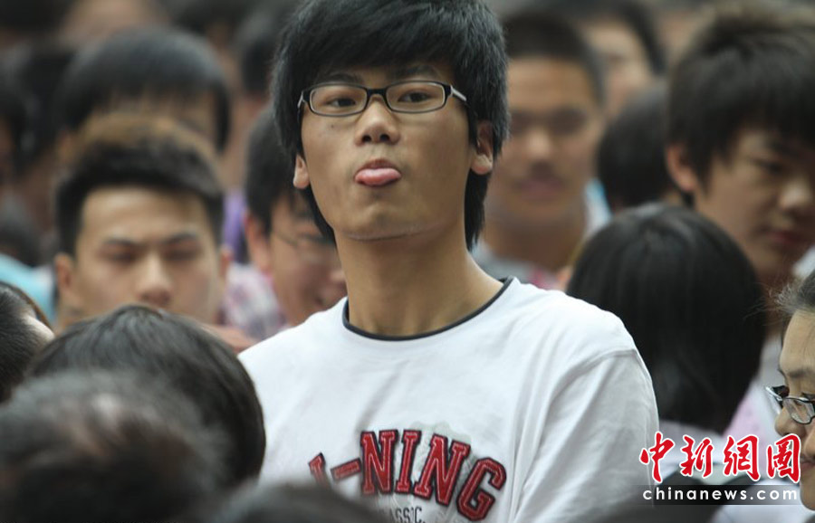 6月7日,為期兩天的2010年普通高等學(xué)校招生全國統(tǒng)一考試開考,全國將有957萬考生走進(jìn)考場。圖為6月7日,武漢,高考首場結(jié)束,考生輕松走出考場。在湖北武漢建港中學(xué)考點(diǎn),走出考點(diǎn)的高考生在尋找自己的家長。孫新明 攝