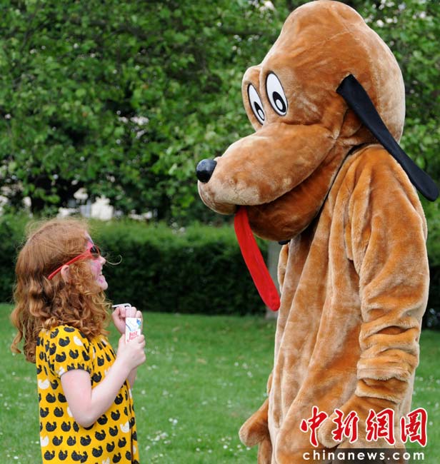 當(dāng)?shù)貢r(shí)間2010年6月6日,英國(guó)倫敦舉行卡姆登綠色市集(Camden Green Fair),這是英國(guó)倫敦每年環(huán)保領(lǐng)域的“重頭戲”。本屆市集的主旨是要喚起大眾對(duì)環(huán)境問(wèn)題的關(guān)注,選擇更加可持續(xù)發(fā)展的生活方式。據(jù)活動(dòng)主辦方預(yù)計(jì),本屆市集將吸引來(lái)自英國(guó)各地和世界各國(guó)的2萬(wàn)多人參加。圖為素食推廣志愿者扮成卡通狗吸引孩子。Fiona/攝 Fiona 馬小剛/文