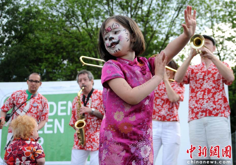 當地時間2010年6月6日,英國倫敦舉行卡姆登綠色市集(Camden Green Fair),這是英國倫敦每年環(huán)保領域的“重頭戲”。本屆市集的主旨是要喚起大眾對環(huán)境問題的關注,選擇更加可持續(xù)發(fā)展的生活方式。據活動主辦方預計,本屆市集將吸引來自英國各地和世界各國的2萬多人參加。圖為一名英國小女孩兒身著中式旗袍翩翩起舞,宣傳環(huán)保。Fiona/攝 Fiona 馬小剛/文