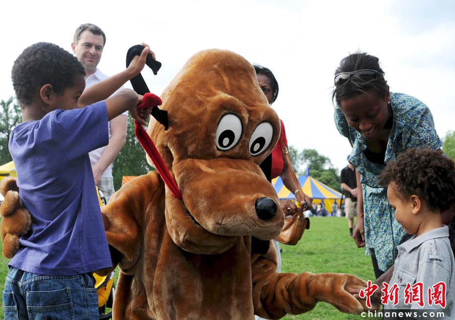當(dāng)?shù)貢r(shí)間2010年6月6日,英國(guó)倫敦舉行卡姆登綠色市集(Camden Green Fair),這是英國(guó)倫敦每年環(huán)保領(lǐng)域的“重頭戲”。本屆市集的主旨是要喚起大眾對(duì)環(huán)境問(wèn)題的關(guān)注,選擇更加可持續(xù)發(fā)展的生活方式。據(jù)活動(dòng)主辦方預(yù)計(jì),本屆市集將吸引來(lái)自英國(guó)各地和世界各國(guó)的2萬(wàn)多人參加。圖為由工作人員扮成的卡通狗總會(huì)引來(lái)許多孩子。Fiona/攝 Fiona 馬小剛/文