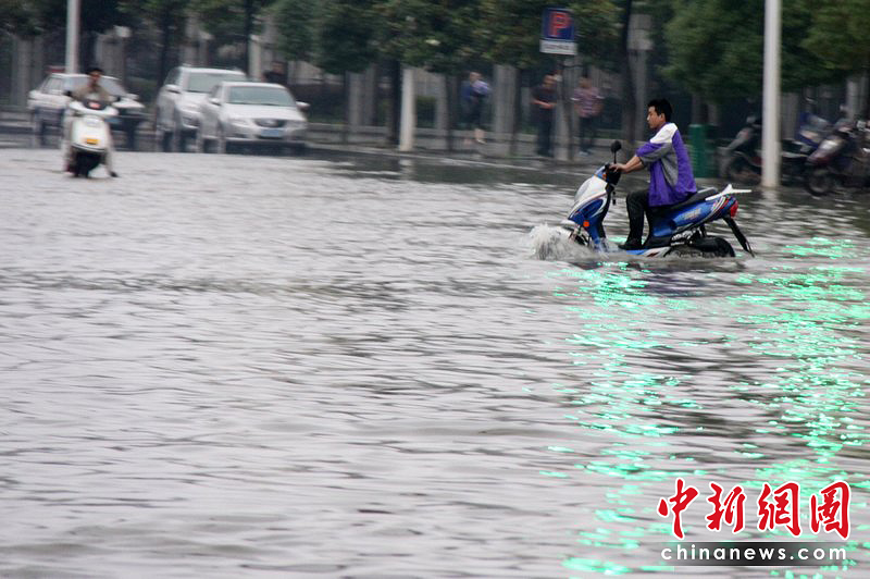 6月8日,在江西瑞昌市街頭,行人在積水中艱難前行。自6月7日夜間開始,江西九江市持續(xù)遭受暴雨襲擊,各縣、區(qū)24小時的平均降雨量在80毫米左右,最大降雨量在廬山區(qū)達到134毫米。魏東升 胡國林/CFP