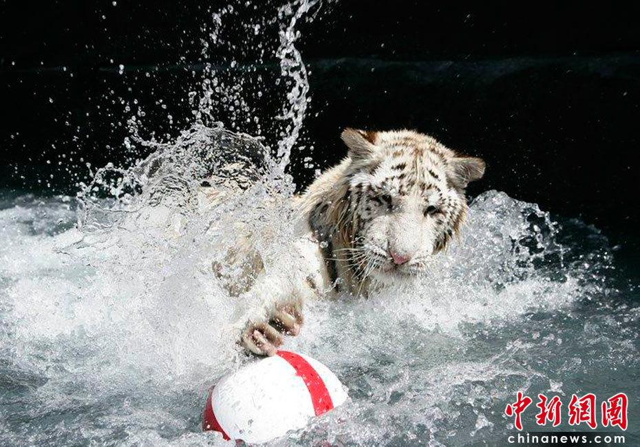 美國“虎寶貝”水中秀球技