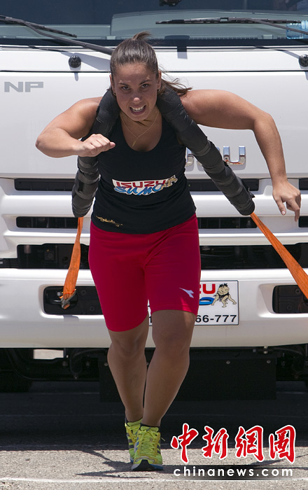 6月8日,以色列在海濱城市特拉維夫舉行了拉卡車大賽。比賽要求將一臺7.5噸的卡車?yán)?0米以外,用時最短者為勝者。該項(xiàng)賽事不但吸引了世界上眾多男性大力士,更有許多女性大力士出戰(zhàn)。圖片來源:中國新聞網(wǎng)