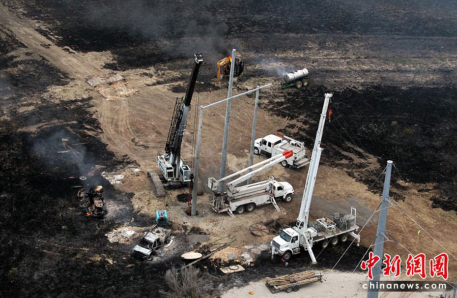 當地時間6月7日,美國得克薩斯州北部發(fā)生一起天然氣管道爆炸事件。幾名工人在進行挖掘作業(yè)時觸及鋪設在地下的天然氣管道,引發(fā)爆炸及大火,造成至少一名工人死亡,7人受傷。圖片來源:中國新聞網