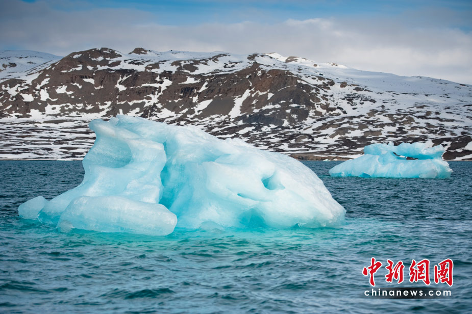 挪威的新奧勒松建有多個(gè)國(guó)家的北極考察站。圖為6月5日拍攝的挪威新奧勒松海岸的冰山。