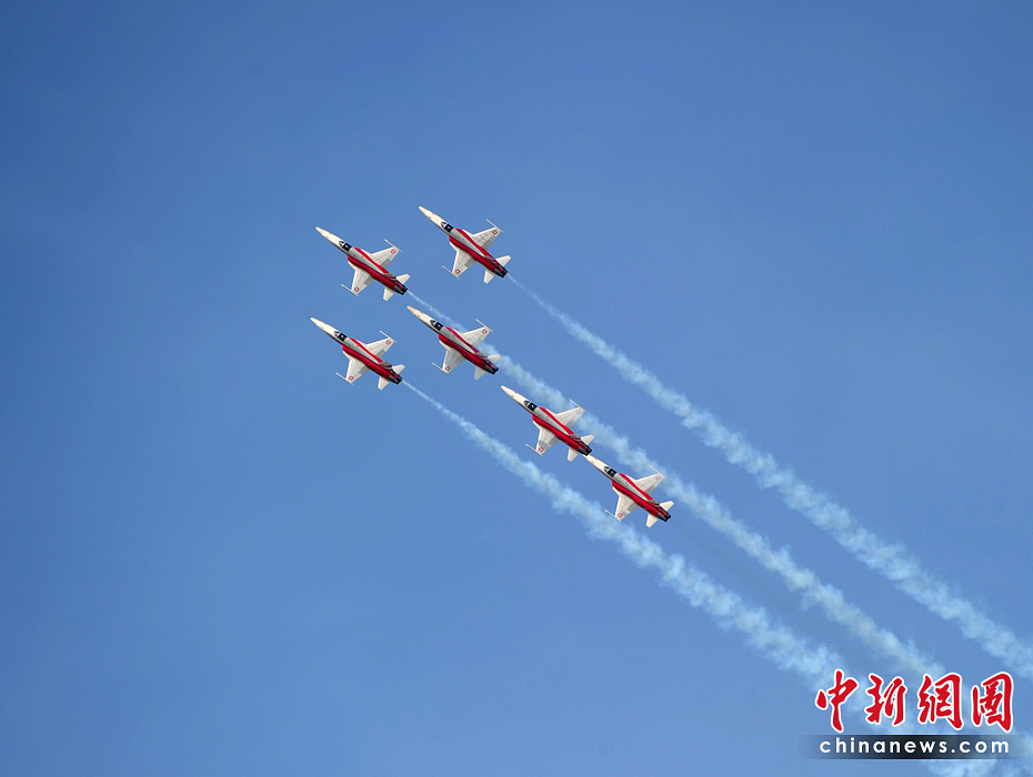 2010年柏林國際航空展于當(dāng)?shù)貢r間6月8日在德國柏林舍內(nèi)費(fèi)爾德機(jī)場開幕。9日,瑞士飛行表演隊在航展上演了精彩的飛行表演。圖片來源:中國新聞網(wǎng)