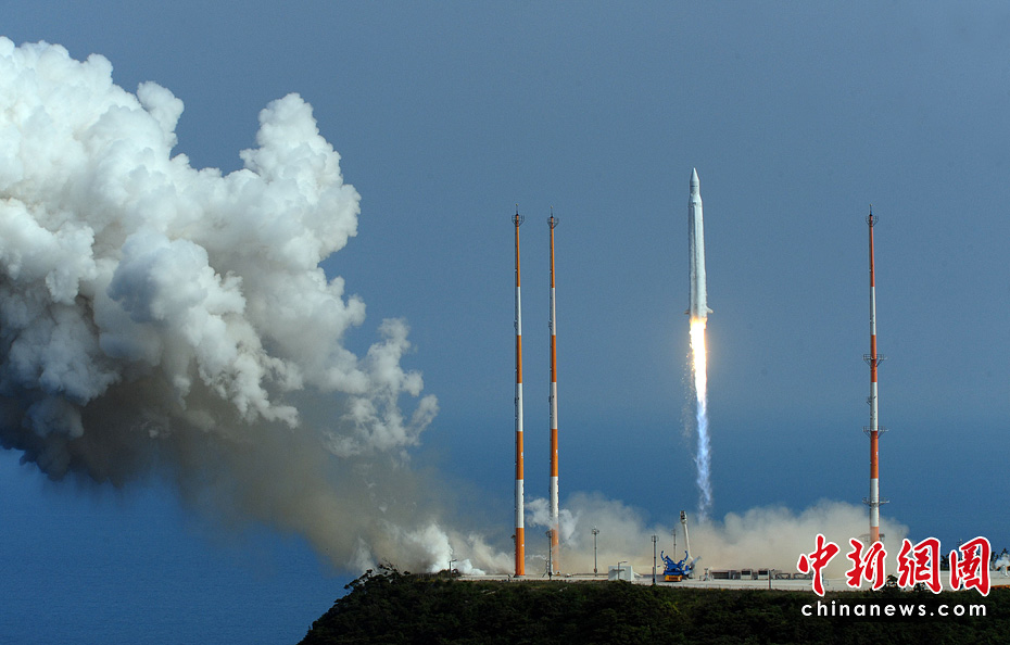 當(dāng)?shù)貢r(shí)間6月10日下午5時(shí)左右在韓國(guó)發(fā)射升空的“羅老”號(hào)運(yùn)載火箭脫離了預(yù)定軌道并墜毀。繼去年首次發(fā)射失敗后,韓國(guó)再次將該國(guó)運(yùn)載火箭“羅老”號(hào)發(fā)射升空。但在火箭升空后不久,就失去了與地面的聯(lián)系。據(jù)韓國(guó)YTN電視臺(tái)的電視畫面顯示,升空的“羅老”號(hào)在空中70公里處脫離了預(yù)定軌道并墜毀。圖片來(lái)源:中國(guó)新聞網(wǎng)