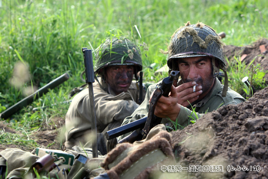 6月5日,諾曼底登陸66周年前夕,一批演員身著二戰(zhàn)時期美軍軍服,在法國諾曼底卡倫坦重現(xiàn)了這次著名的戰(zhàn)役。圖片來源:中國新聞網(wǎng)>>點擊觀看詳細(xì)內(nèi)容