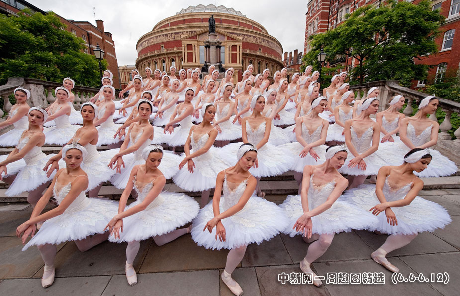 英國國家芭蕾舞團6月8日迎來60周年生日,60名舞蹈演員在倫敦皇家艾伯特大廳附近合影。英國國家芭蕾舞團將于本月9日至19日在皇家艾伯特大廳上演經(jīng)典芭蕾舞劇“天鵝湖”。 圖片來源:中國新聞網(wǎng)>>點擊觀看詳細內容