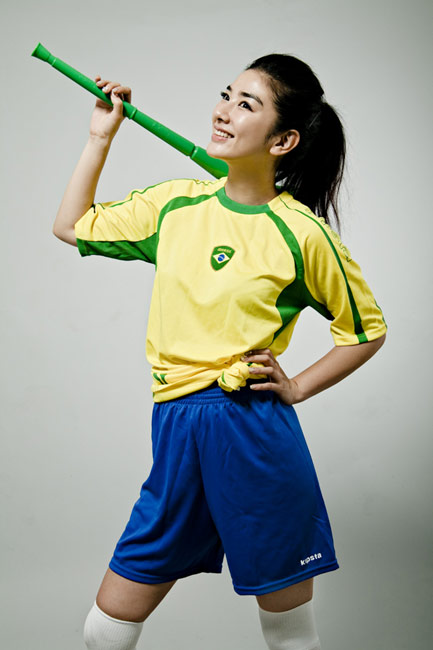 近日,黃奕身穿巴西隊(duì)球衣拍攝了一組世界杯足球?qū)懻妫瑸槟戏鞘澜绫炔省?/p>