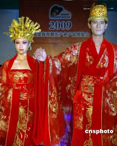 三月十三日,一名女模特在福建婚博會(huì)現(xiàn)場(chǎng)婚紗秀上展示婚紗,婉約可人。當(dāng)日,二○○九福建海西婚慶產(chǎn)業(yè)產(chǎn)品博覽會(huì)在榕開幕,展出面積近六千平方米,包括臺(tái)資企業(yè)在內(nèi)的婚慶商家五十余家參加了展會(huì)。中新社發(fā) 劉可耕 攝