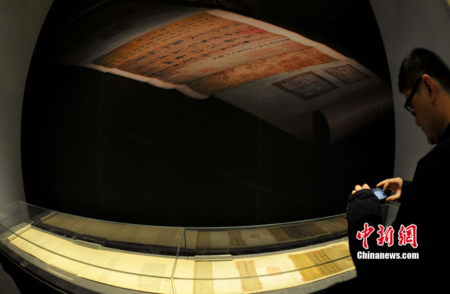 11月20日晚,在中國嘉德2010秋季拍賣會“秋光萬華——清代宮廷藝術(shù)集粹”專場中,王羲之草書《平安帖》以人民幣三億零八百萬成交。中新社 楊可佳 攝