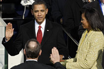 美國東部時(shí)間1月20日上午12點(diǎn)05分(北京時(shí)間21日凌晨1點(diǎn)05分)。四十七歲的奧巴馬在華盛頓國會山宣誓就職。美國建國二百三十二年來,第一次迎來了一位非洲裔總統(tǒng)。 【專題】