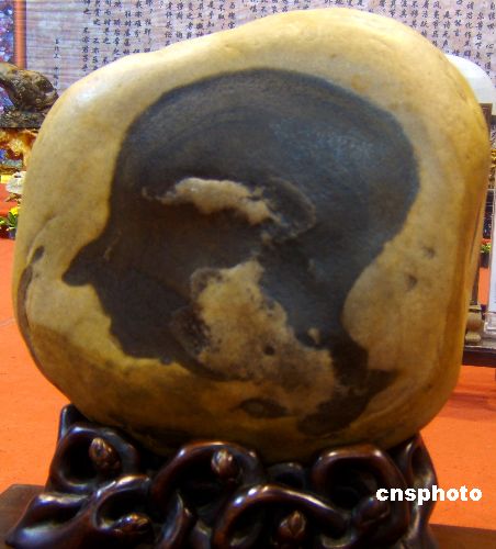 11月7日,一方酷似前奧委會(huì)主席薩馬蘭奇的奇石亮相湖北宜昌舉辦的三峽奇石精品展,該石在北京剛剛結(jié)束的中國(guó)觀賞石博覽會(huì)——2007“走進(jìn)奧運(yùn)”邀請(qǐng)展上,由宜昌市奇石家協(xié)會(huì)選送的三峽奇石“薩馬蘭奇”一舉奪得,同時(shí)攬獲兩枚銀獎(jiǎng)、3枚銅獎(jiǎng)、1枚榮譽(yù)獎(jiǎng)和1個(gè)組織獎(jiǎng)。中新社發(fā) 任衛(wèi)紅 攝