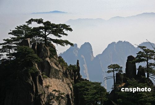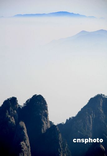 2007年12月4日,黃山風(fēng)景區(qū)藍(lán)天云海奇觀。當(dāng)日,冬陽嫵媚,天空碧藍(lán)。安徽黃山風(fēng)景區(qū)晴天驚現(xiàn)藍(lán)天白云奇觀,讓人心曠神怡。黃山風(fēng)景區(qū)在藍(lán)天白云的映襯下,青中帶紫,近看山形勾勒分明,遠(yuǎn)眺如畫中寫意,朦朧如幻,千溝萬壑松柏郁翠,群峰連綿盡收眼底。中新社發(fā) 方也廣德 攝