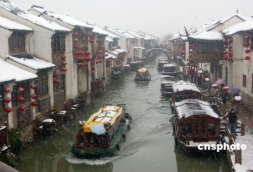 1月27日,蘇州迎來(lái)了今年以來(lái)的最大范圍的強(qiáng)降雪天氣,雖說(shuō)給市民的出行帶來(lái)不便,但古色古香的山塘街也被白雪包裹,呈現(xiàn)出一種幽靜安寧的景色,吸引了大批的游客前來(lái)觀賞。中新社發(fā) 邱勇 攝
