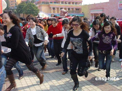 3月6日,長沙世界之窗廣場內(nèi),千余名女士穿著4厘米以上的細(xì)跟高跟鞋賽跑,用這種特殊的方式紀(jì)念?yuàn)W運(yùn)年的婦女節(jié),并為北京奧運(yùn)加油。中新社發(fā) 肖前輝 攝